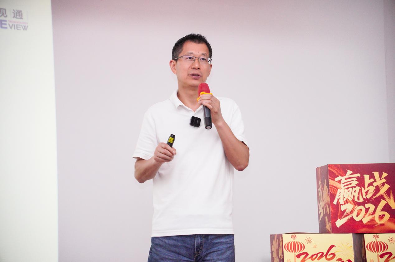 全视通董事长林三朝首先向全体同仁致以诚挚感谢,充分肯定大家在2025年的辛勤付出,并提出要坚持以产品为支点、以客户为中心,做坚定的长期主义者。随后,他全面总结了公司过去一年产品研发、生产智造、市场营销、服务品质、标杆案例、经营管理、团队建设等方面的亮点成果与不足。他立足分析公司实际,结合政策导向变化、同行竞争加剧、原材料成本提升,并据此明确提出2026年“降本增效”的总体工作要求,强调要从公司治理、团队提升、产品创新、营销策略等多个维度,落实契合公司发展的切实路径。